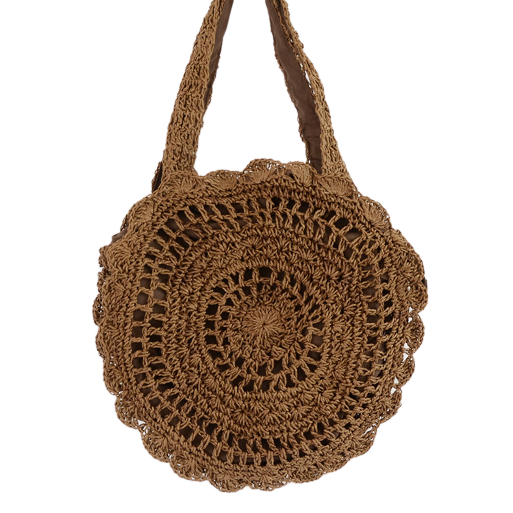 Meet our Bohemian Beach Shoulder Bag – a perfect blend of vintage charm and practical design. With a round, crochet pattern and woven knitted straw as the main material, it radiates laid-back vibes. The cotton inner liner ensures comfort, while the interior, featuring a key chain holder, compartment, zipper pocket, slot pocket, and cell phone pocket, keeps your essentials organized.