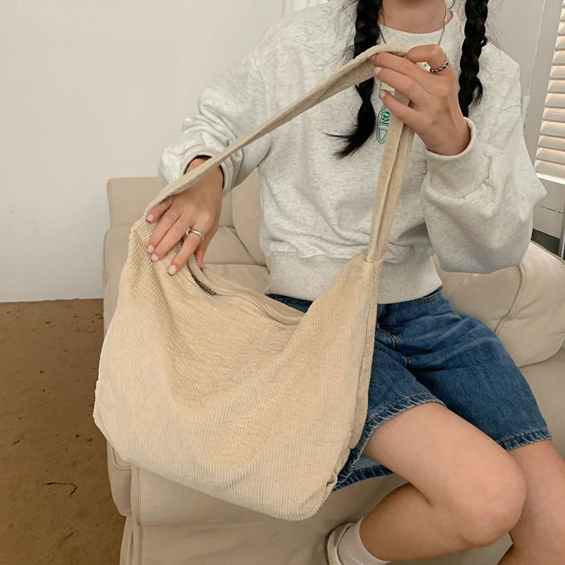 The Pleated Corduroy Zipper Tote Bag – a stylish blend of functionality and sophistication.