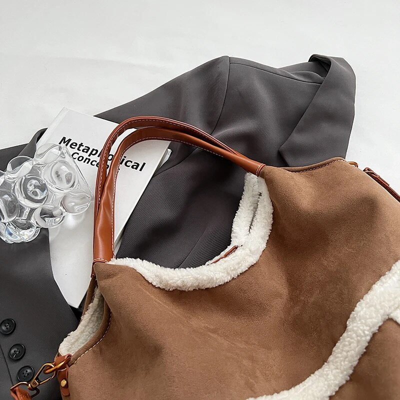 Made from high-quality Vegan Leather, the simulated suede not only looks fabulous but also aligns with ethical choices. Elevate your fashion game with the Retro Rancher Shearling Sherpa Tote – where classic meets contemporary in a cruelty-free way.