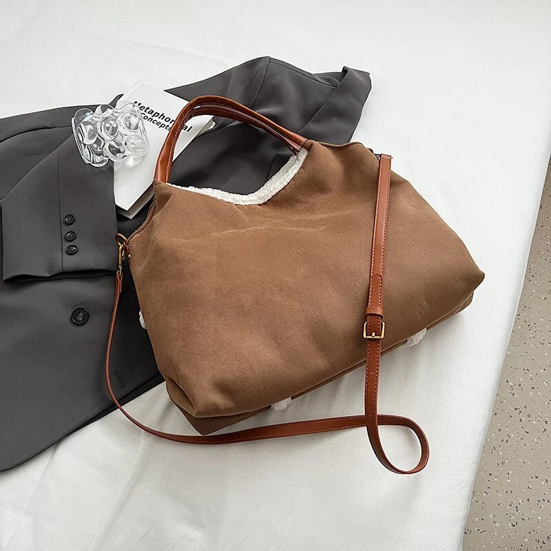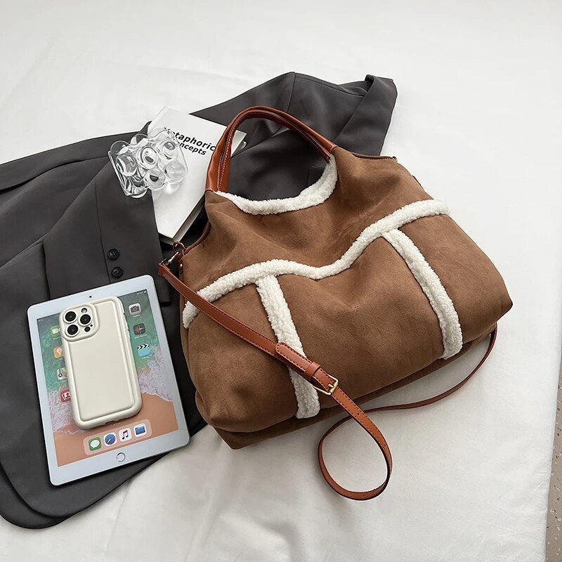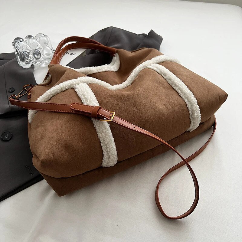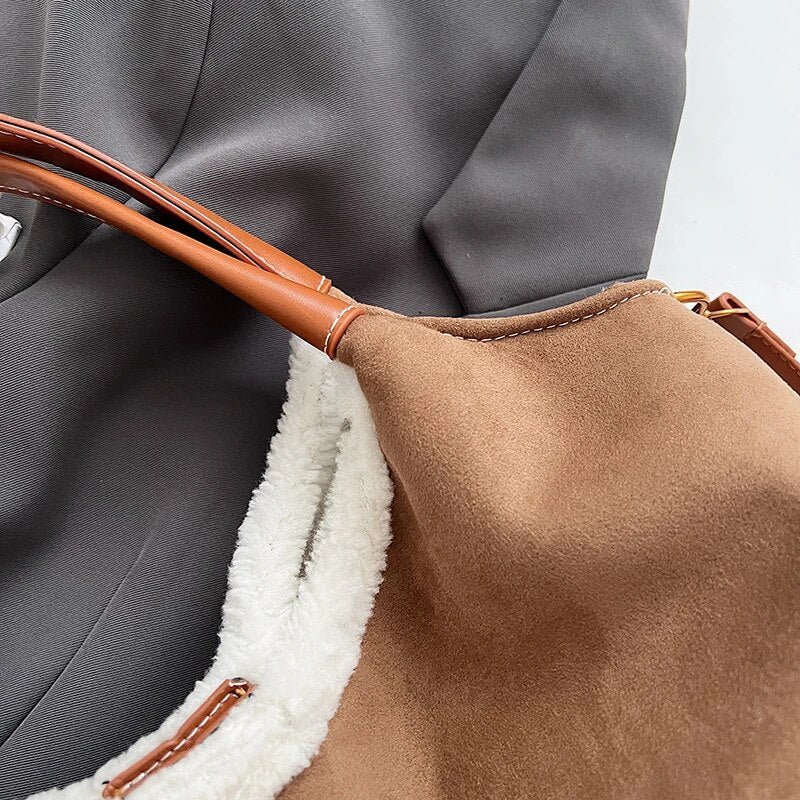 Made from high-quality Vegan Leather, the simulated suede looks and feels fabulous. Elevate your fashion game with the Retro Rancher Shearling Sherpa Tote – where classic meets contemporary in a cruelty-free way.