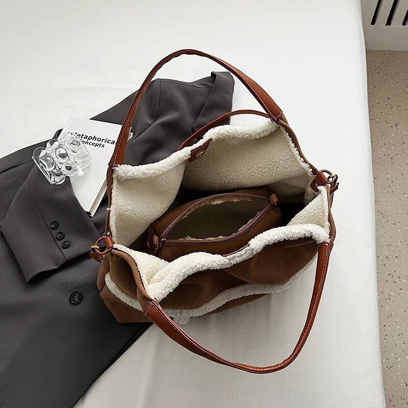 The Retro Rancher Shearling Sherpa Tote – a perfect fusion of vintage charm and modern style. This tote boasts a luxurious feel with its shearling sherpa design, creating a timeless look that stands out. Think, Marlboro Man, but cuter!